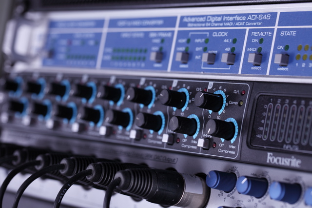 Unser RME-Interfacesystem (MADIFACE XT) bietet über MADI bis zu 192 Kanäle (jeweils in + out).